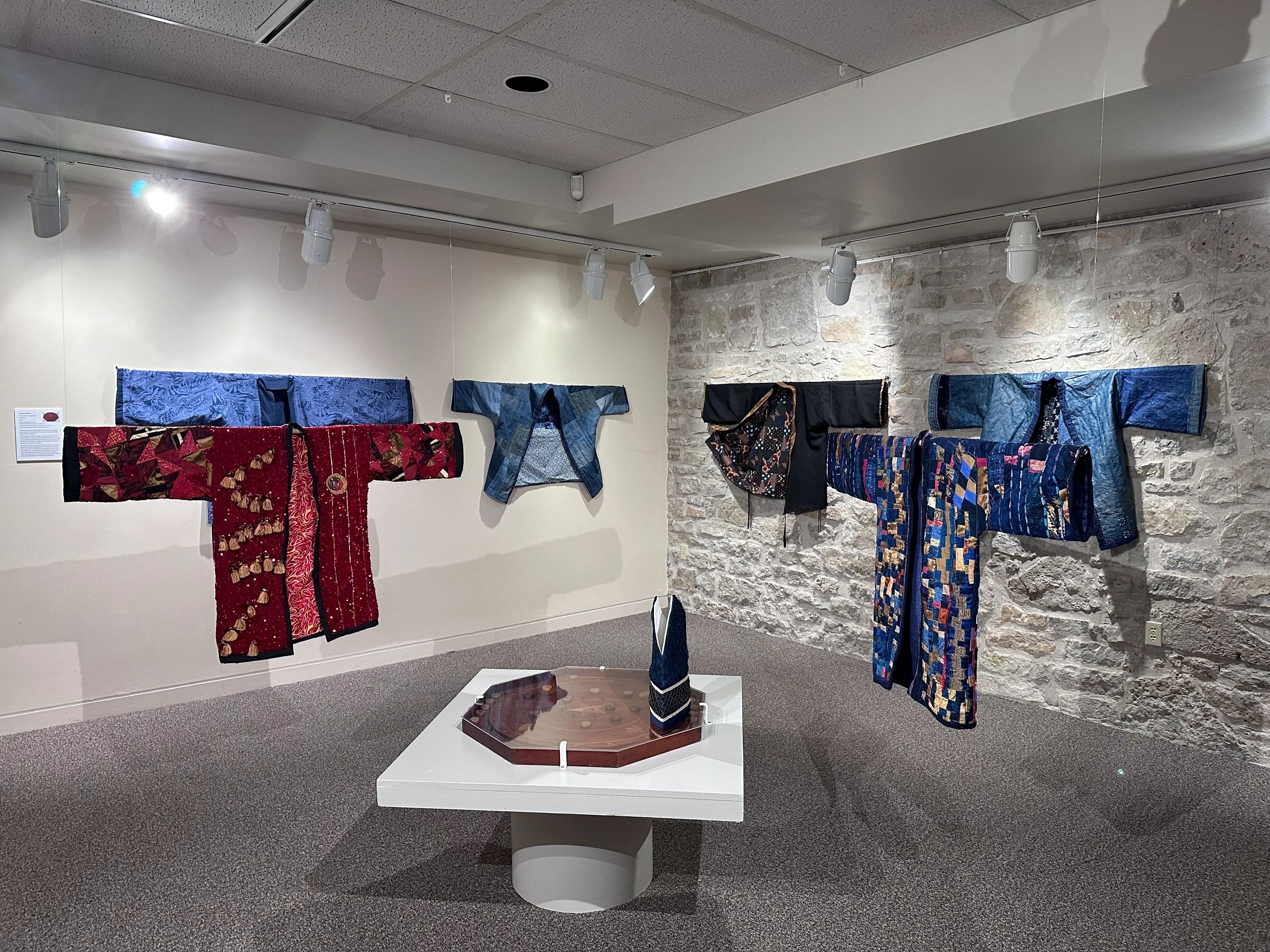 The installation was based on a legend of a fisherman and a farmer who sold their souls to the devil and had to be rescued by an Archbishop and a game of crokinole. The jackets are Hanten style made in a modified Boro technique .They are wearable
